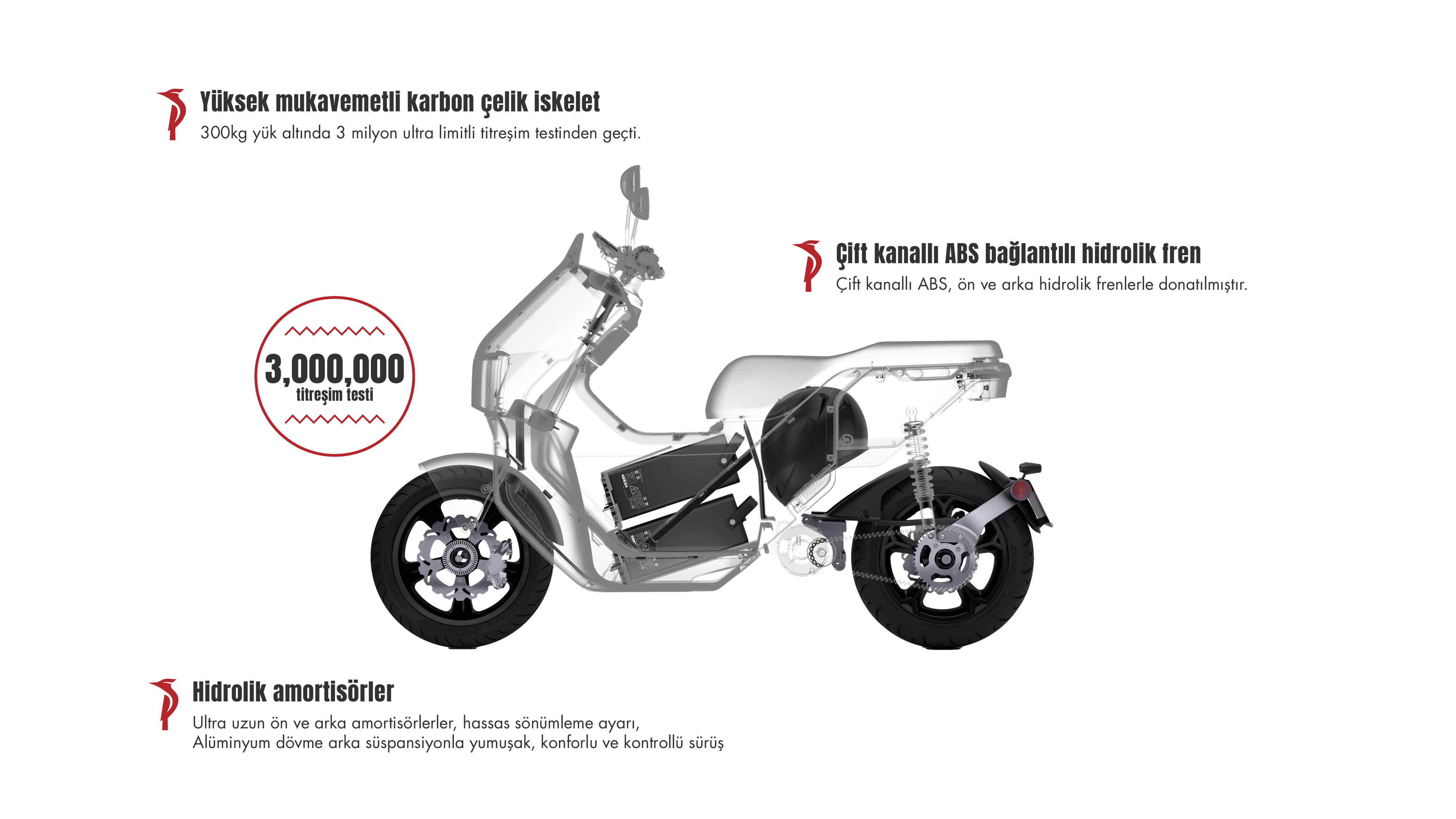 | Lastikler | Ön: 100/80-14” Arka: 130/70-13” |