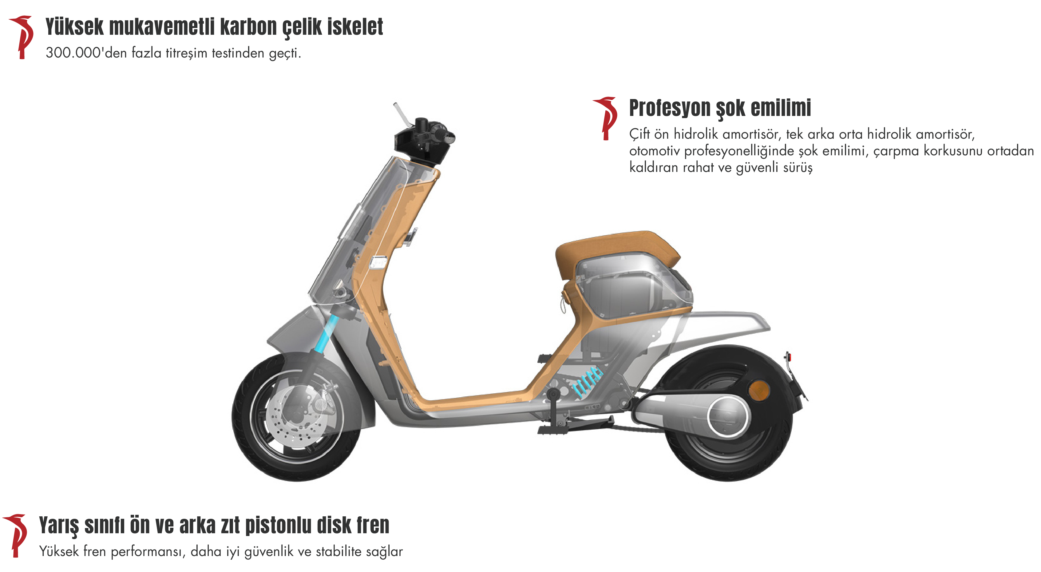 | Arka Fren Sistemi | 170 mm Çapında Hidrolik Tek Disk Fren, 2 Pistonlu Kaliper |